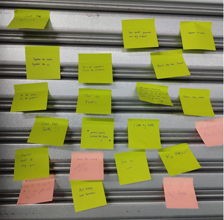 Participants were then invited to write personal pledges—simple commitments to live more sustainably—creating a heartfelt display of collective environmental promises.