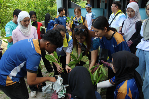 Participants continued their environmental mission with a beach cleanup at Pantai Teluk Ketapang, collecting 11 bags of plastic waste and other litter along the shoreline. The cleanup not only improved the beach environment but also reinforced awareness of marine pollution and strengthened teamwork among participants.
