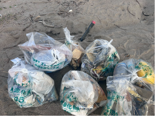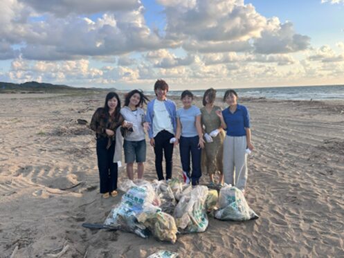 On the morning of 26 September 2025, participants from the Environmental Club of Akita International University drove together to Katsurahama Beach, where they spent about an hour cleaning the shoreline. Armed with gloves, tongs, and eco-bags, the team walked along the coast collecting all sorts of litter washed ashore — plastic bottles, food wrappers, fishing gear, cigarette butts, and even remnants of fireworks