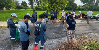 Prior to the implementation of River Clean-up #2, the committee and volunteers conducted initial preparations by reviewing the river’s condition and recording baseline observations, including water cleanliness, dominant waste types, and the specific areas to be cleaned. The activity began with a joint briefing at the main meeting point, where the coordinator explained the objectives of the cleanup, group assignments, designated work zones, and procedures for collecting and sorting waste. Safety guidelines were also emphasized to ensure participants remained cautious while working in slippery and rocky river conditions. Protective equipment, including gloves, boots, and large sacks, was distributed to all participants.