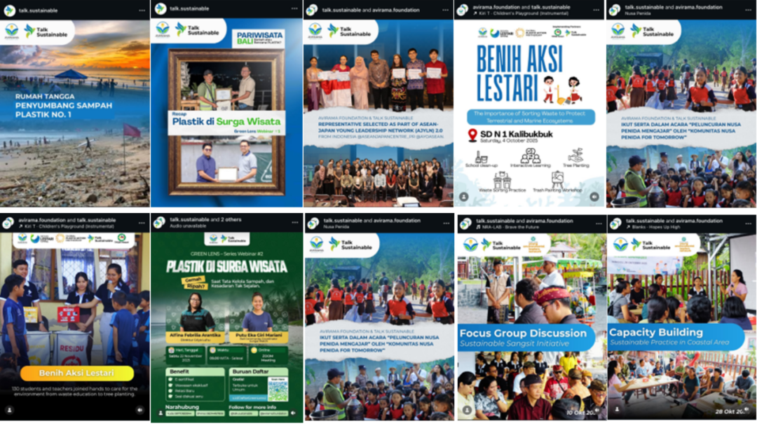 The campaign successfully established a strong digital presence for Talk Sustainable as a transparent, credible, and actively engaged initiative in environmental protection. Public engagement increased significantly, as reflected in active discussions, comments, and the sharing of campaign content across digital platforms. Overall, the campaign contributed to raising broad public awareness of the urgency of addressing plastic waste pollution, particularly in marine environments. It reinforced the message that effective environmental protection begins with consistent, everyday practices at the household level, while also underscoring the importance of collaboration between communities and government institutions to ensure the successful implementation of plastic waste reduction policies and regulations.