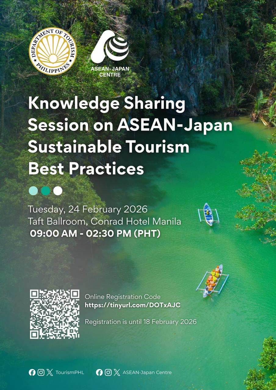 日本アセアンセンターはフィリピン観光省とサステナブル観光ベストプラクティスセミナーをフィリピンのマニラで共催します。本セミナーでは、日本・フィリピン・ラオスを代表するサステナブル観光事業者によるパネルセッションの他、世界観光機関(UN Tourism)アジア太平洋地域事務所によるサステナブル観光に関する講演や、発表されたばかりの2026-2030年ASEAN観光分野計画の概要をご紹介をします。